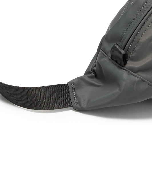 ・Waist Bag made with high-density recycled nylon twill fabric ・Two-tone design created by color variations in recycled nylon twill with differing levels of sheen and firmness ・Environmentally friendly non-fluorine PFC-free water repellant finish ・THE NORTH FACE Purple Label brand label and Tri-Ferg brand label representing PALACE SKATEBOARDS on the front ・Equipped with zipper pocket for storing small items on the upper part of the main body