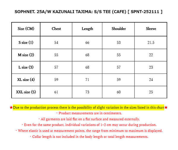 SOPHNET. 25A/W KAZUNALI TAJIMA: S/S TEE (CAFE) [ SPNT-252111 ]