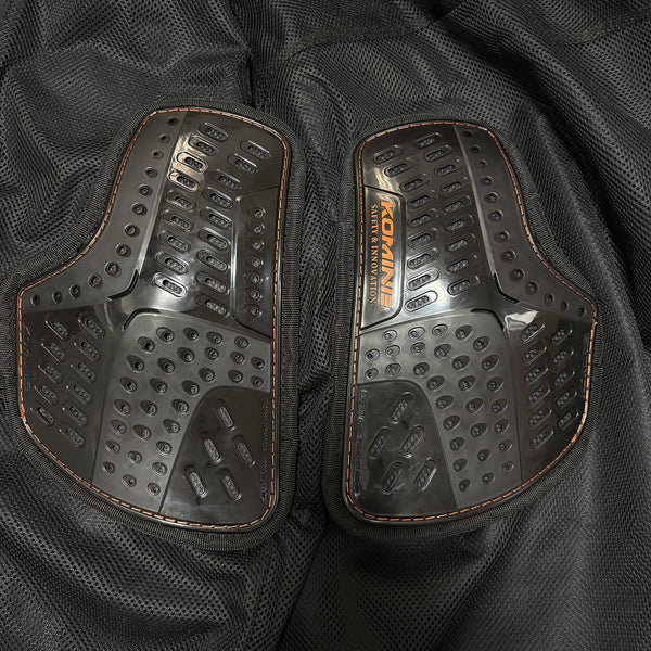 Safety is also a priority, as the jacket features a removable KOMINE protector on the chest and fluorescent reflectors on the sleeves, shoulders, and back for increased nighttime visibility.
