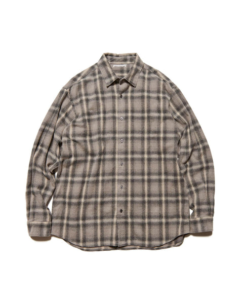 The "FADE" series check shirt, which has become a staple item representing UE, expresses an aged texture. It comes in a wide variety of fabrics and colors, with different patterns used for each color, including shaggy-brushed gray, light gray and sage with a melange touch, light brown made with a cotton-polyester blend, and red made with herringbone fabric. Additionally, this season, pants made with the same material are also available.