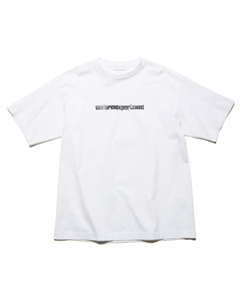 A crew-neck T-shirt featuring the “uniform experiment” logo in a faded gradient color scheme, symbolically placed on the chest. The body is made from a crisp jersey fabric that has been silk-finished to give it a subtle sheen, and the T-shirt is available in three color variations.