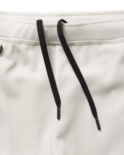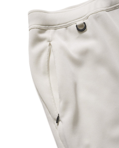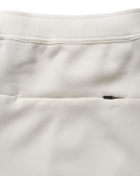 These knit trousers feature a low-gauge double-faced knit with a distinctive loose weave and light texture, enabling extended wear from early spring through to early summer. A different panel construction at the front and back enhances the fit. Coordinating pieces include a pullover hoodie and short-sleeved top.