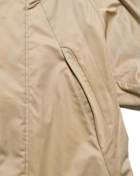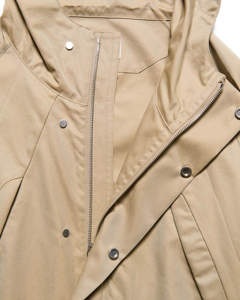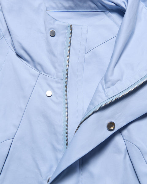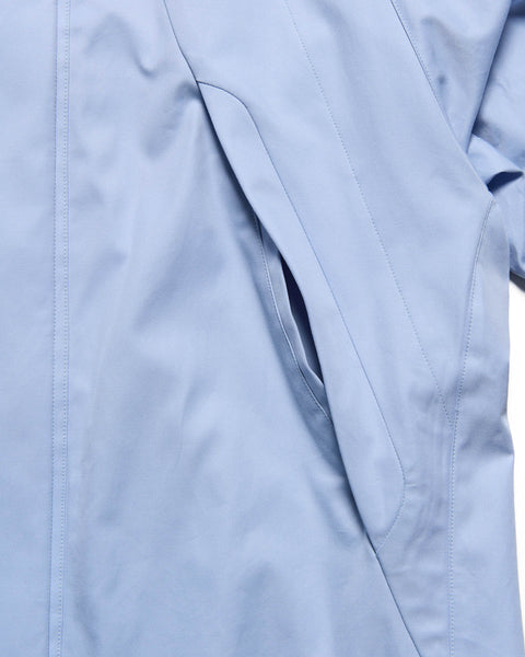 A luxury mountain jacket crafted from high-density gabardine. Egyptian cotton is yarn-dyed using proprietary techniques to achieve a clear, vibrant hue and exceptional durability. It retains outdoor functionality with features like slanted chest pockets, a double zipper, and a hem drawstring, while elevating the design to a refined, modern style. The brand's signature left sleeve pocket adds a distinctive accent. Though rooted in outdoor gear, the material and tonal palette create a softer atmosphere, making it an easy-to-wear piece for everyday use.