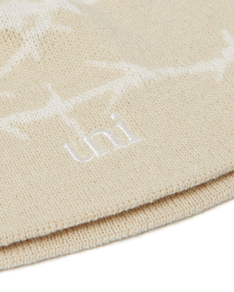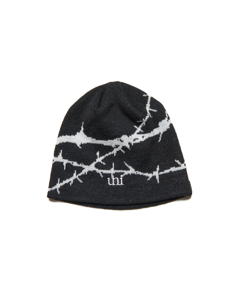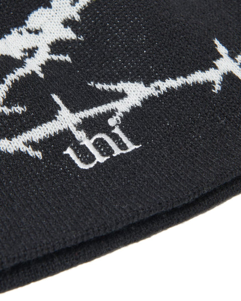 This sporty single beanie features a bold design of tangled barbed wire, incorporating UE's signature punk aesthetic. Available in two easy-to-match colors, black and beige, the seasonal uni logo on the front adds a nice accent.
