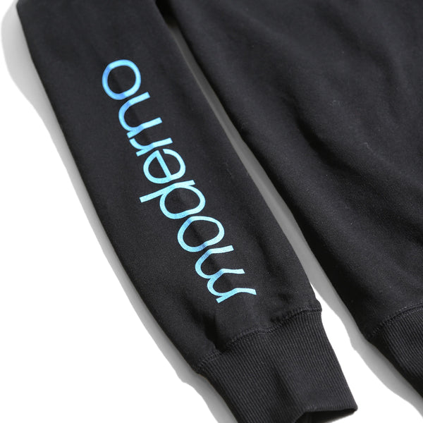 Introducing a hoodie collaboration between modedrno, the record bar produced by Tatsuo Sunaga, and FRAGMENT, the brand headed by Hiroshi Fujiwara!