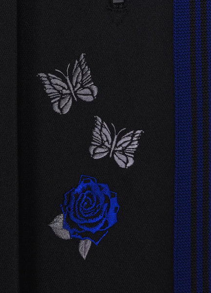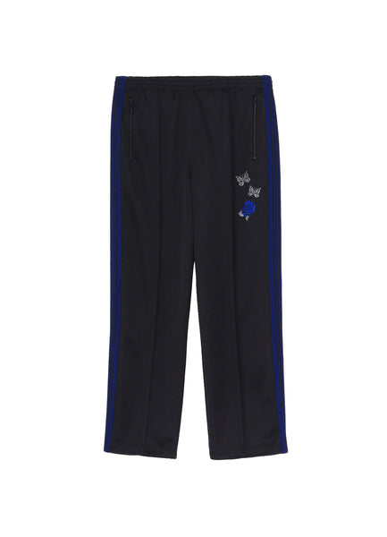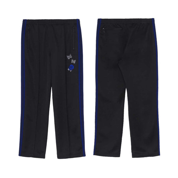 NEEDLES' classic track trousers utilise a polyester jersey fabric offering excellent stretch and breathability, with blue accents along the side seam.