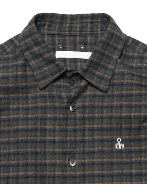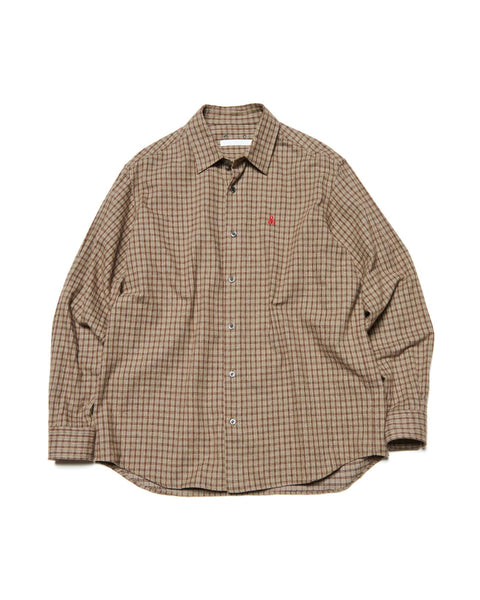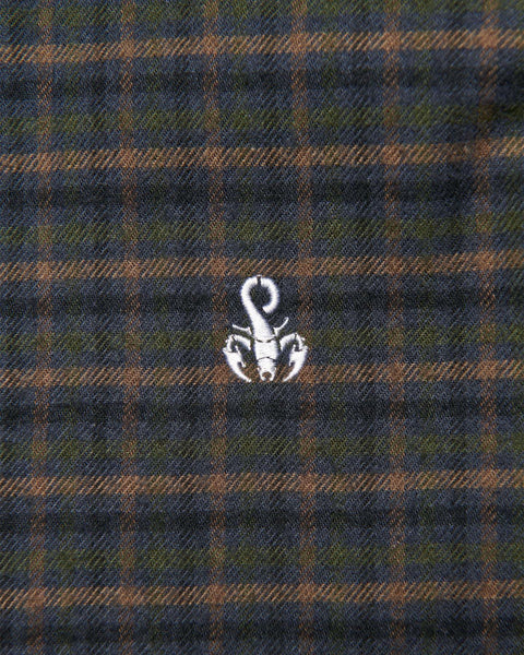 A relaxed-fit flannel shirt featuring SOPHNET.'s iconic scorpion motif as a single-point embroidery. Materials are meticulously selected for each colour. Each undergoes a long-pile brushing process to draw out the cotton's inherent loft and softness, resulting in a warmer, more textured finish. This product offers a wonderfully enveloping feel, allowing you to appreciate the harmony between its fabric and silhouette.
