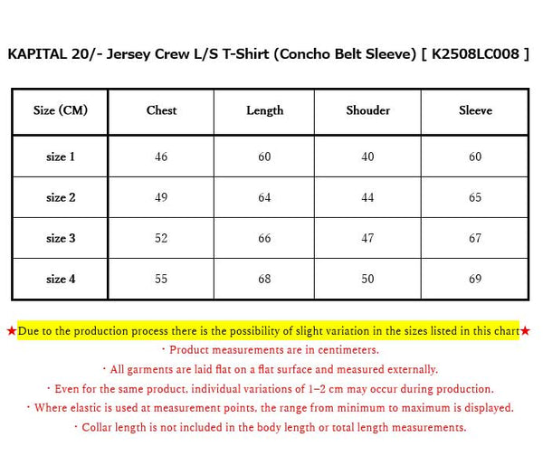 KAPITAL 20/- Jersey Crew L/S T-Shirt (Concho Belt Sleeve) [ K2508LC008 ]