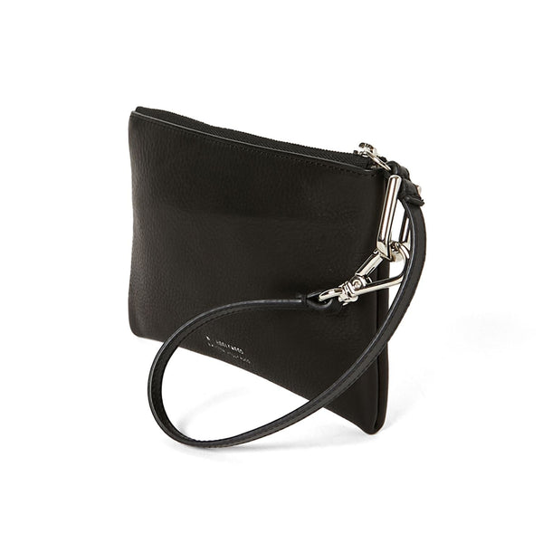 ・Custom zipper pull and cord with carabiner for easy attachment. Features an external zip pocket and additional internal storage pocket. Silver foil logo on the front.