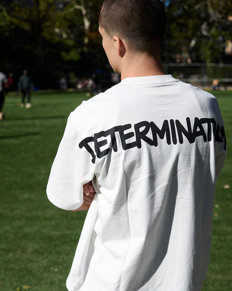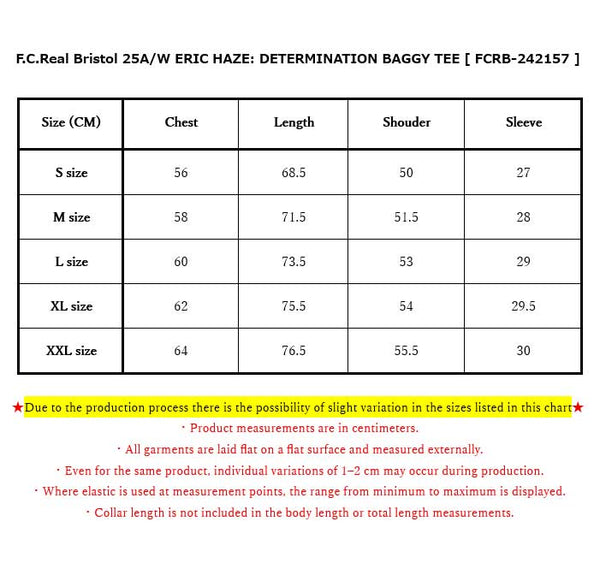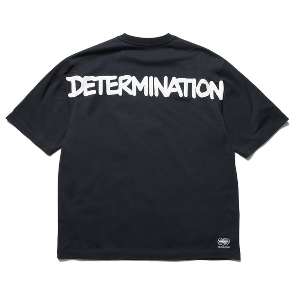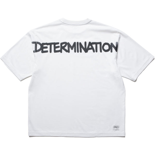 A short-sleeved T-shirt collaboration with legendary street scene artist Eric Haze. The word “DETERMINATION” emblazoned across the baggy-fit body expresses a spirit of resolve and challenge. The front features the authentic logo, reimagined in the artist's signature graffiti font. This anniversary piece delivers a straightforward yet powerful impression through its clean layout of slogan and logo.