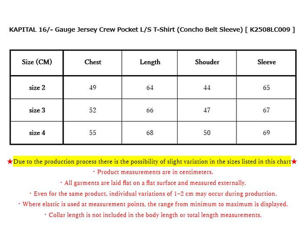 KAPITAL 16/- Gauge Jersey Crew Pocket L/S T-Shirt (Concho Belt Sleeve) [ K2508LC009 ]