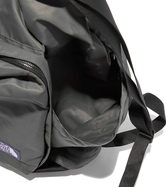 ・Two-tone design created by color variations in recycled nylon twill with differing levels of sheen and firmness