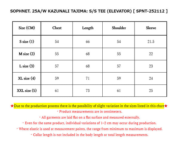 SOPHNET. 25A/W KAZUNALI TAJIMA: S/S TEE (ELEVATOR) [ SPNT-252112 ]