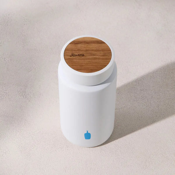 The bottle features a limited-edition color exclusive to Blue Bottle Coffee.