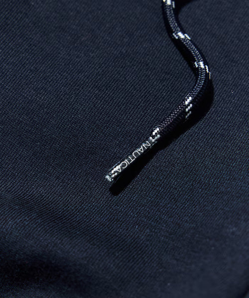 ●Made with cardboard fabric, a first for NAUTICA, these sweatpants combine lightness with a three-dimensional feel.
