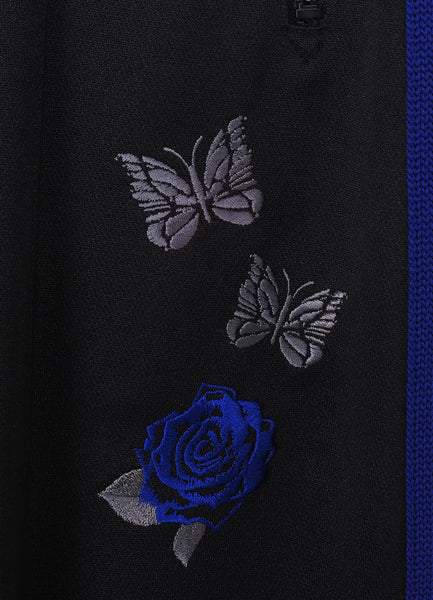 NEEDLES' classic track trousers utilise a polyester jersey fabric offering excellent stretch and breathability, with blue accents along the side seam.