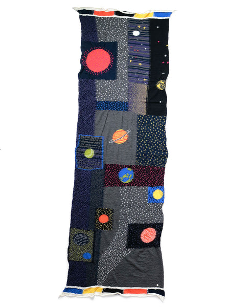 This fluffy wool scarf retains the simple and idyllic atmosphere of Gabbeh, while depicting warm sunlight and planets.Attention : This item is not eligible for exchange, refund or return service.