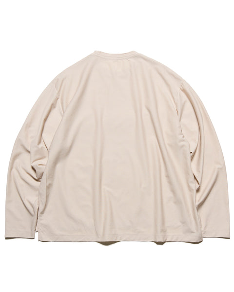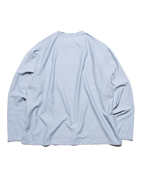 A long-sleeve T-shirt crafted with meticulous attention to materials and technique. Its ultra-high-gauge special knit pattern creates a three-dimensional texture impossible with standard knitwear. It combines the natural feel of cotton-linen with the functionality of polyester. Two lockstitches at the neckline and a wide silhouette lend a suitably relaxed vibe. Available in black, beige, and a seasonal light blue.