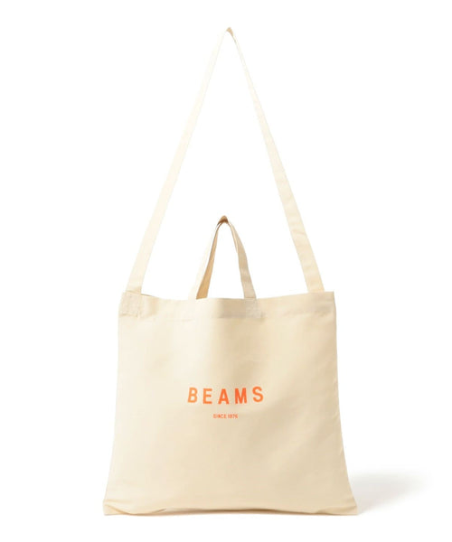 A simple 2-way shoulder bag with the BEAMS SINCE1976 logo on the front. The off-white color creates a natural atmosphere, and the logo coloring adds a touch of style. can it be used as a shoulder bag, but it also has a handle, so it can be used as a handbag.
