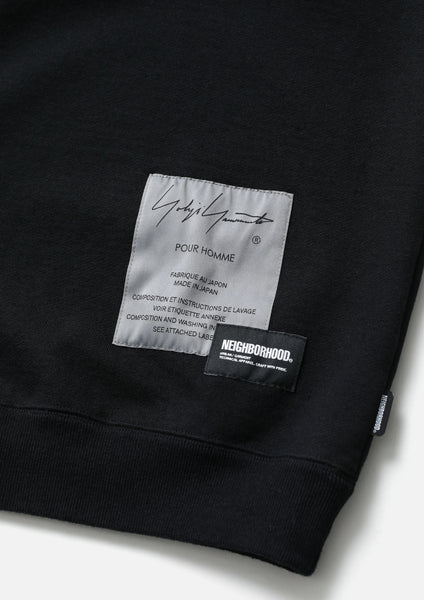 Crewneck pullover in mid-weight cotton fleece. Logo printed on the front. Finished with a brand tag at the left hem and a woven flag label at the side seam. One-wash finish. A collaboration with Yohji Yamamoto POUR HOMME.