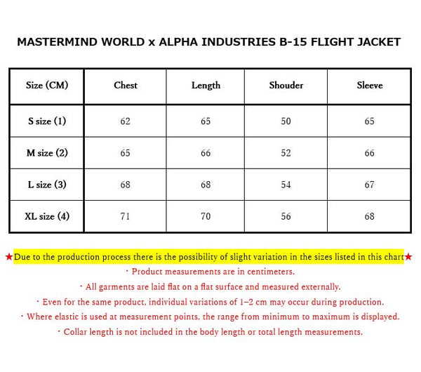 MASTERMIND WORLD x ALPHA INDUSTRIES B-15 FLIGHT JACKET [ MW25C15-BL105 ]