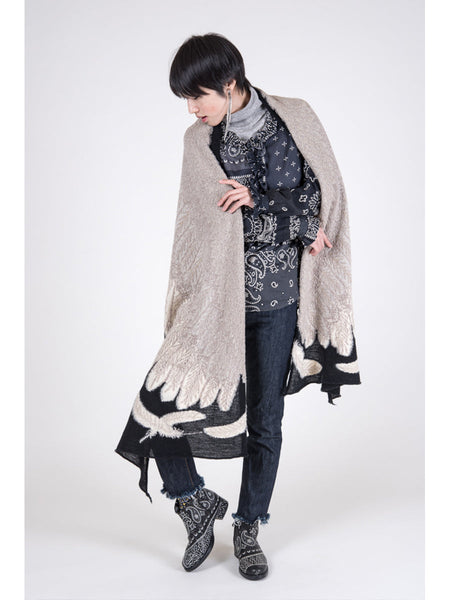 A wool scarf that is soft and soft to the touch. A muffler that expresses a large eagle flapping in the night sky with a combination of lame threads.