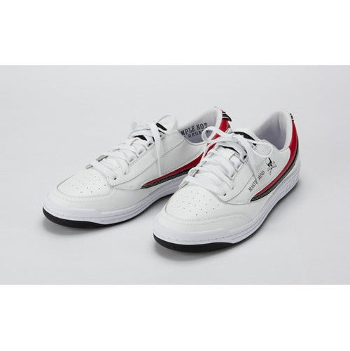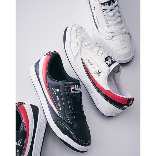 A collaboration between FILA's classic “FX-2” from 1985 and Japan's street brand “MASTERMIND.” The design retains the FX-2 silhouette while featuring MASTERMIND's signature skull motif and a monochrome palette. The logo on the upper side makes a bold statement, while both brands' designs are showcased on the insole and heel tab. This pair blends fashion with street spirit.