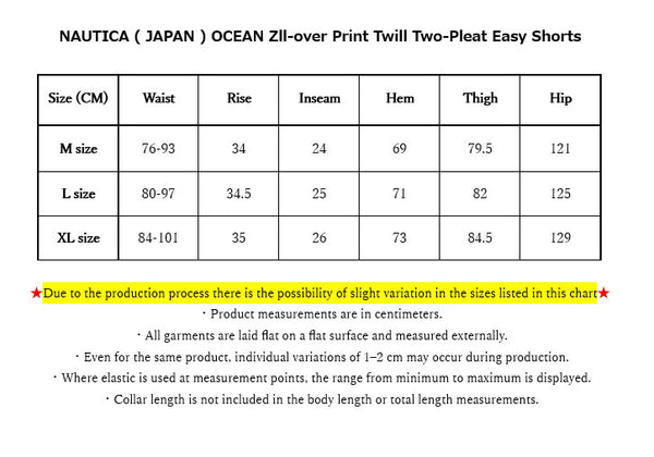 ★Due to the production process there is the possibility of slight variation in the sizes listed in this chart★