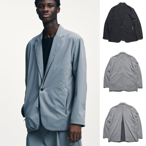 This lapel jacket is crafted from innovative sustainable materials. Made with environmentally friendly plant-based and recycled materials, it combines eco-friendliness with functionality. Its soft texture, four-way stretch, and water-repellent properties provide a comfortable fit. The back zipper ventilation and packable design maximize practicality. The relaxed fit and round button details add a touch of style to this series, which literally crosses over between business and leisure. Gray is now available as a new color.