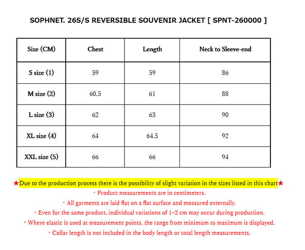 ★Due to the production process there is the possibility of slight variation in the sizes listed in this chart★
