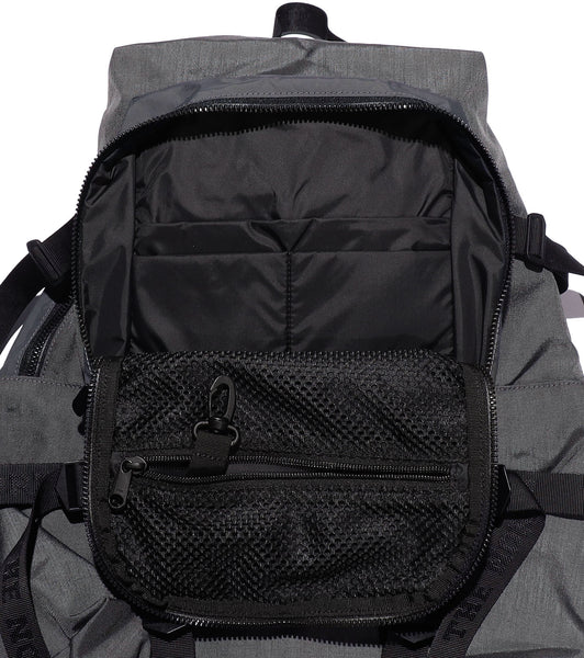・Day pack made in a combination of 500D CORDURA® RE/COR nylon and 75D CORDURA® ripstop nylon that are lightweight and with water-repellent finish ・Based on the Hot Shot from THE NORTH FACE archive, with updated materials and details ・Uses jacquard tape with THE NORTH FACE letters ・Metal adjuster with engraving and logo shaped fastener pull ・Size adjustable by tape on the side and bottom ・Removable chest strap ・Dot button pocket on both sides that can hold a bottle ・Front pocket has a pocket that can hold pen, notebook and documents, and also a mesh fastener pocket with key hook ・Back of body has a convenient padded pocket that can hold a 13.5-inch laptop PC or tablet
