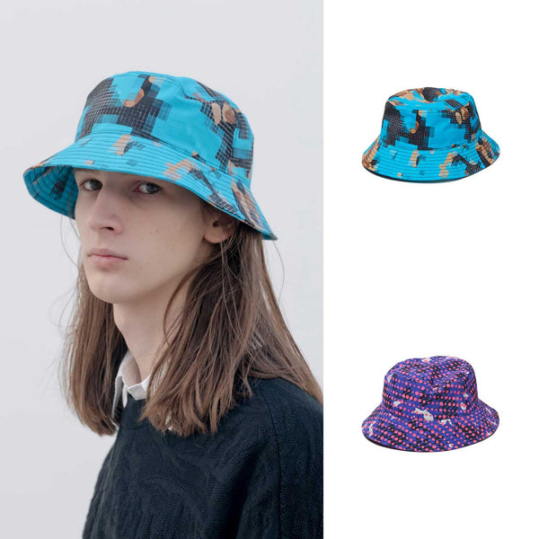 The same original digital camouflage patterned 3-layer nylon used in our mountain jackets, tote bags, and even the ventilation knit fabric is now featured in a casual bucket hat. It serves as effective rain gear in outdoor settings while adding a stylish accent to streetwear looks.