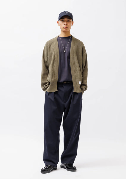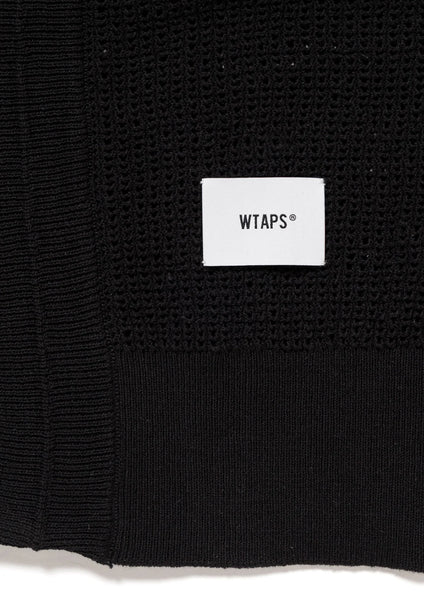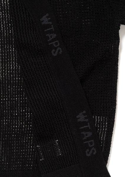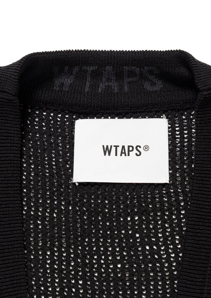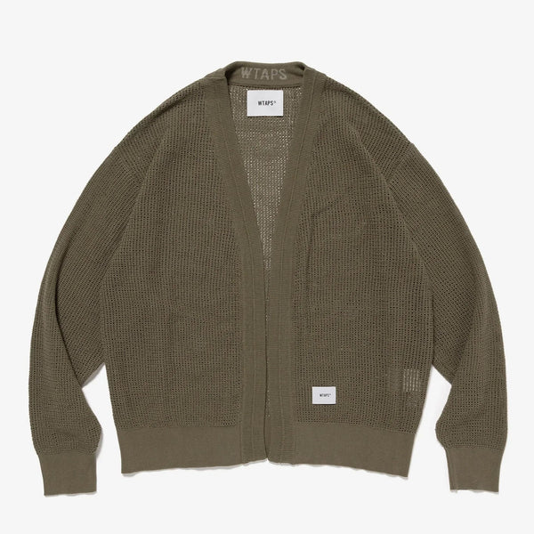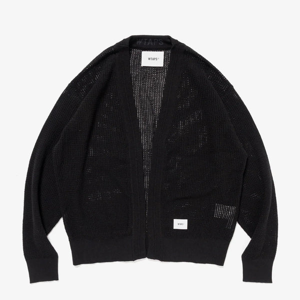 A cardigan made from cotton mesh fabric. It features ribbed cuffs and hem, and is characterized by a slightly loose silhouette. A motif is placed on the inside of the front placket.