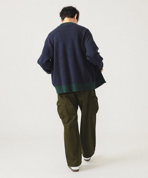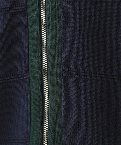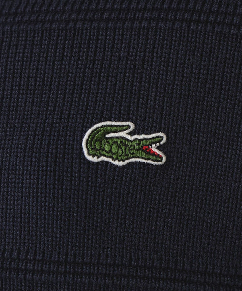 This zip-up cardigan is crafted from cotton-nylon, a collaboration with LACOSTE and BEAMS. This season, jacquard knitting adds depth to the look, creating a minimalist yet striking piece.