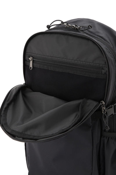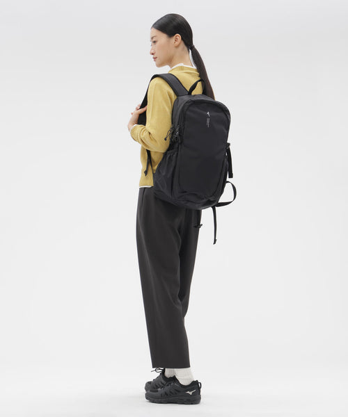 The “MIZUNO FOR MARGARET HOWELL” collection fuses Mizuno's advanced technology with Margaret Howell's sensibility. It utilizes diamond ripstop fabric with a PFAS-free, highly water-repellent finish. This lightweight material resists tearing and exceeds Mizuno's own stringent strength standards. The original bag's capacity has been increased to approximately 25L, redesigned with softer, rounded lines. Utilizing the chest strap allows for use in more active scenarios. This highly functional backpack features a mesh inner pocket in the front pocket for convenient small item storage and a dedicated laptop compartment inside the main body.