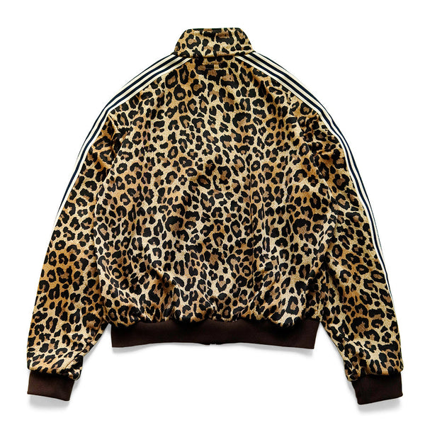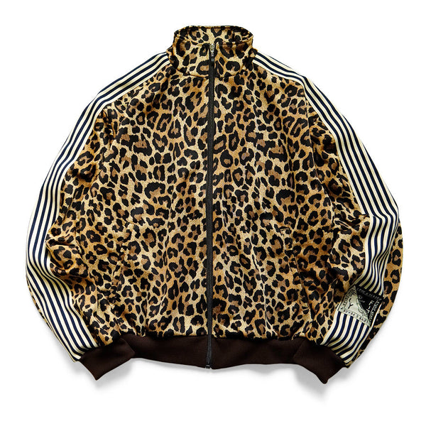 Leopard-print track jacket. Accented with side stripes. Featuring a simple silhouette, it is crafted from smooth jersey fabric with a silky-soft feel.