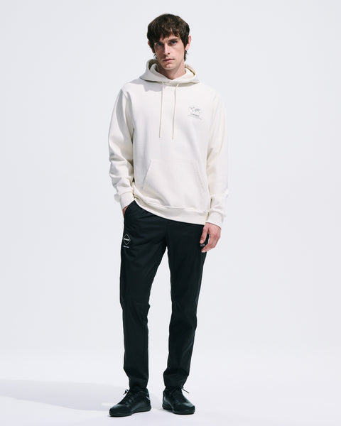 A pullover hoodie featuring the fictional WORLD CHAMPIONSHIP logo on the front chest and back. The pile lining provides moderate warmth, while the world map section on the back incorporates reflective print for a playful touch. A long-sleeve T-shirt featuring the same design is also available.