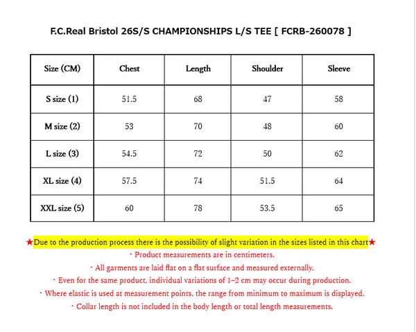 F.C.Real Bristol 26S/S CHAMPIONSHIPS L/S TEE [ FCRB-260078 ]