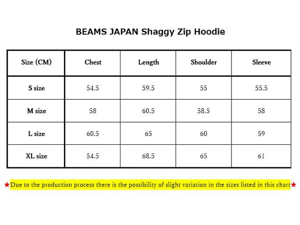 Due to the production process there is the possibility of slight variation in the sizes listed in this chart