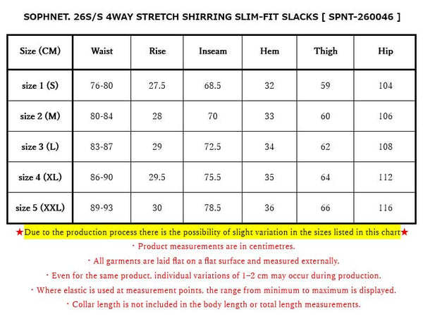 SOPHNET. 26S/S 4WAY STRETCH SHIRRING SLIM-FIT SLACKS [ SPNT-260046 ]