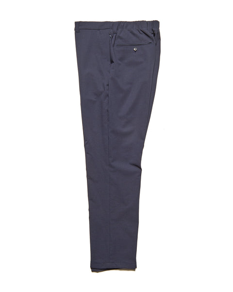 Tapered slacks crafted from high-performance stretch fabric. Their eco-friendly composition—including recycled PET bottle material—and 4-way stretch deliver both environmental performance and practicality. UV protection and excellent breathability make them ideal for summer wear. The front fly and back waist shirring create a functional yet beautiful piece perfect for diverse occasions. Available in Black, Gray, and Navy. A tailored jacket for suiting is also part of the lineup.