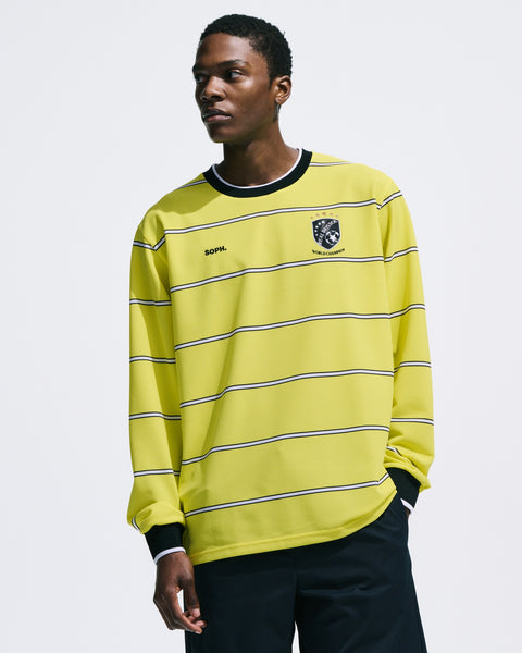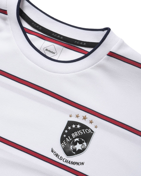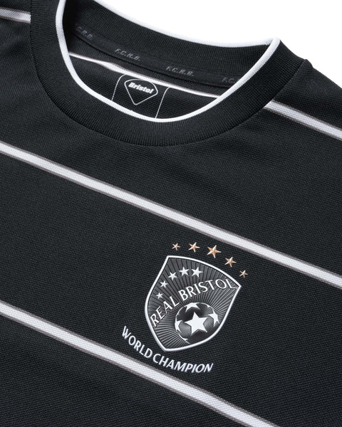 This original striped game shirt features the season's emblem, derived from the collection theme ‘WORLD CHAMPIONSHIPS’, symbolically positioned on the chest. Crafted from highly breathable, moisture-wicking and quick-drying pique fabric, its relaxed silhouette ensures comfort even during summer months. The short-sleeved version of the same specification adopts a classic design with a collar.