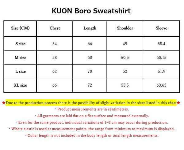 ★Due to the production process there is the possibility of slight variation in the sizes listed in this chart★