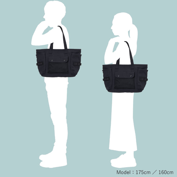 The tote bag is designed to accommodate A4-sized items. Its handles are generously sized for comfortable shoulder carry. The side pockets are sized to hold water bottles or folding umbrellas, and can also accommodate compact fishing rods during fishing trips.