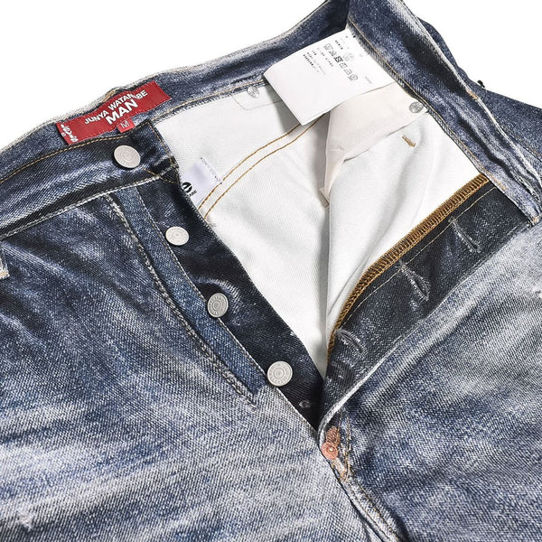 The print faithfully recreates the aging of 70-year-old denim, including the indigo faded and damaged look that only vintage jeans can achieve. Also, the beautiful faded look that only Double X can achieve is a distinctive feature.
