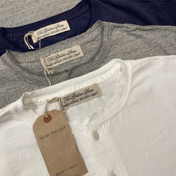 REMI RELIEF's Henley neck pocket T-shirt features attractive design work and a sporty taste. Compared to the 2024 model, the neck is loose, but the width, sleeve width, and length have been significantly revamped.
