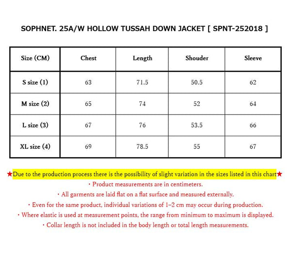 SOPHNET. 25A/W HOLLOW TUSSAH DOWN JACKET [ SPNT-252018 ]