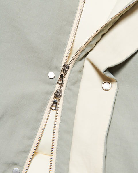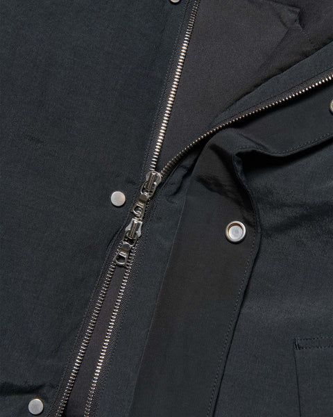 A down jacket crafted from hollow-core polyester yarn with a natural-fibre-like texture. Hollow-core yarn is a textile meticulously woven in the Hokuriku region using hollow polyester filament. Lightweight and highly breathable, it contributes to a lightweight finish in voluminous down garments. The filling is high-specification down with an 800 fill power, offering exceptional warmth. This achieves both high-quality warmth and comfort, resulting in an outerwear piece with a charming, distinctive look.